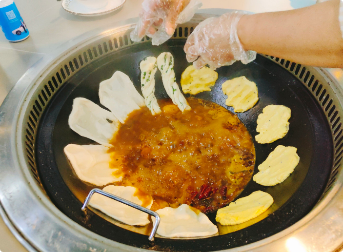 十八里鋪地鍋雞以散養(yǎng)在大自然中的土雞為主料,麻辣鮮香,肉質(zhì)筋道,純正的綠色健康飲食,餅借菜味,菜借餅香,具有軟滑與干香并存的特點?,F(xiàn)有廚師將傳統(tǒng)地鍋菜的制法加以改良,從而推出了地鍋豬手、地鍋雞、地鍋牛肉、地鍋魚、地鍋雞爪等好吃的地鍋佳肴。