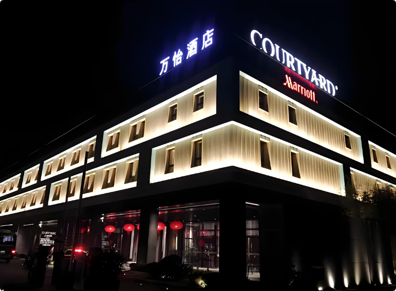 萬怡酒店門頭設(shè)計參考國際奢華品牌概念,材質(zhì)使用高品質(zhì)鋁板,給人感覺精致大氣,增加酒店外觀的價值感。萬怡酒店店時尚舒適,服務(wù)優(yōu),在市場上贏得一定品牌度。萬怡酒店店大堂營造空間感極強(qiáng),采用白色基調(diào),以及明快的燈光,讓人輕松自在。公司針對客戶需求研發(fā)了高品質(zhì)乳膠床墊,為萬怡酒店店打造了無擾睡眠方案,客人可專屬奢享睡眠。